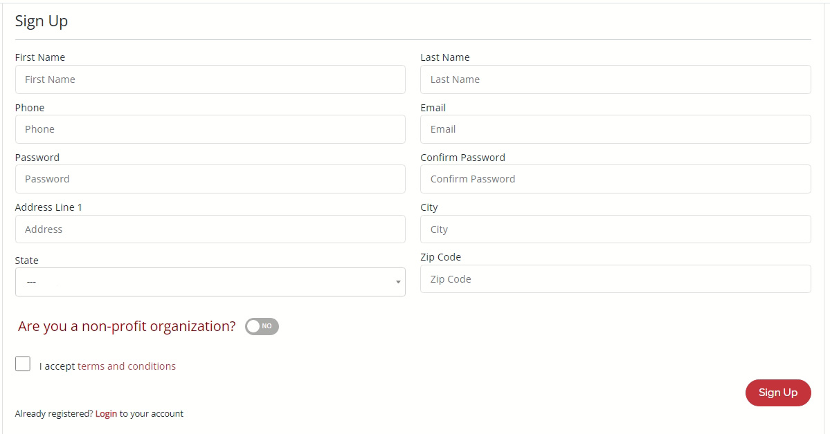 - If you are creating account for a Non profitable organization make sure you choose YES by clicking on the toggle button and upload the organization registration document to verify your account